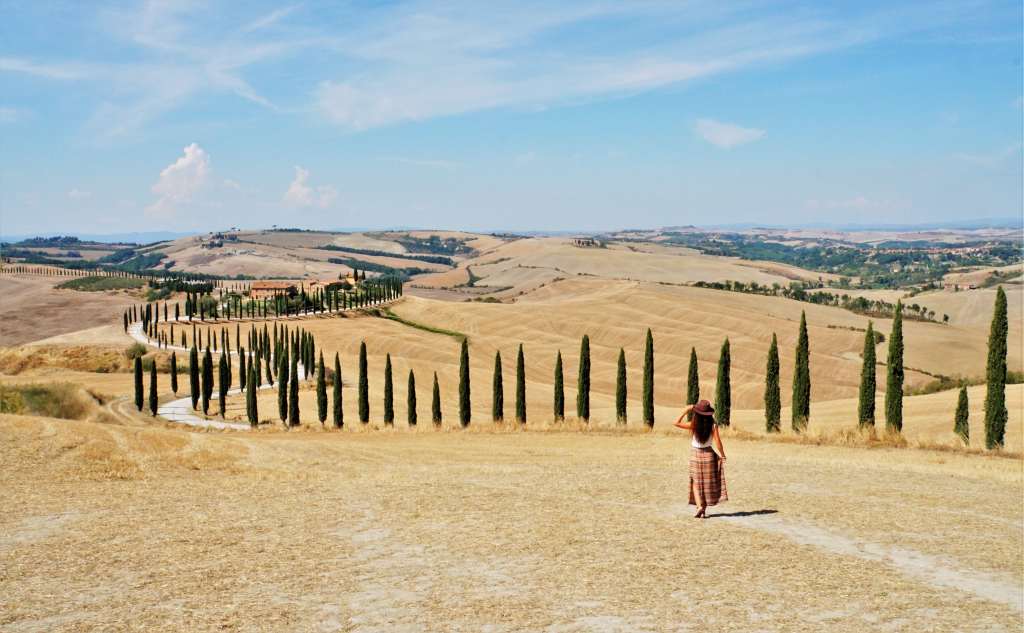 Dans une boutique d’antiquités et d’objets vintages, je suis tombée sur des photos des paysages typiques de Toscane avec les collines à perte de vue et les fameux cyprès taillés en pointe. J’ai demandé où se trouvaient ces lieux au gérant du magasin : il s’agissait de points de vue au sud-est de Sienne. Ni une ni deux, j’ai rebroussé chemin pour m’y rendre, je ne pouvais pas manquer ça ! Une heure et demie environ plus tard, un décor somptueux s’offrait à moi. J’ai passé des heures à arpenter les routes pour en découvrir davantage.